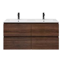 | | Bellanti Gisella/Faro badmeubel 120x46 4 softclose laden walnoot greeploos keramische wastafel dubbel mat wit met 2 kraangaten |