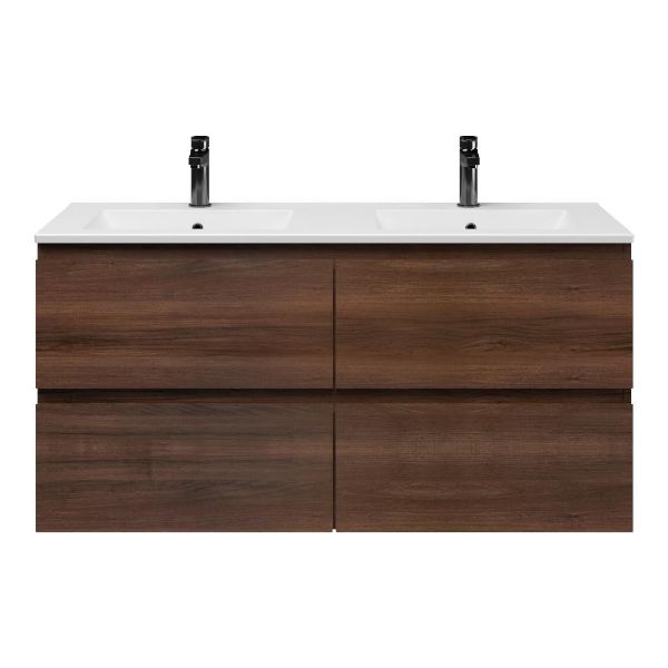 | Bellanti Gisella/Faro badmeubel 120x46 4 softclose laden walnoot greeploos keramische wastafel dubbel mat wit met 2 kraangaten |