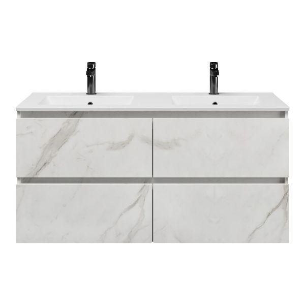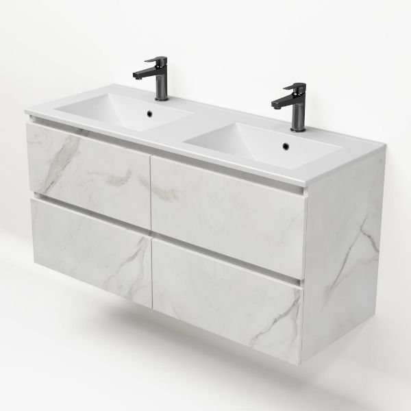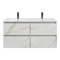 | | Bellanti Elena/Faro badmeubel 120x46 4 softclose laden marmer structuur wit greeploos keramische wastafel dubbel mat wit met 2 kraangaten |