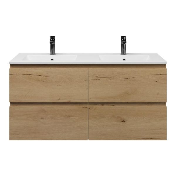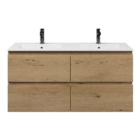 | Bellanti Elena/Faro badmeubel 120x46 4 softclose laden eiken natuur greeploos keramische wastafel dubbel mat wit met 2 kraangaten |