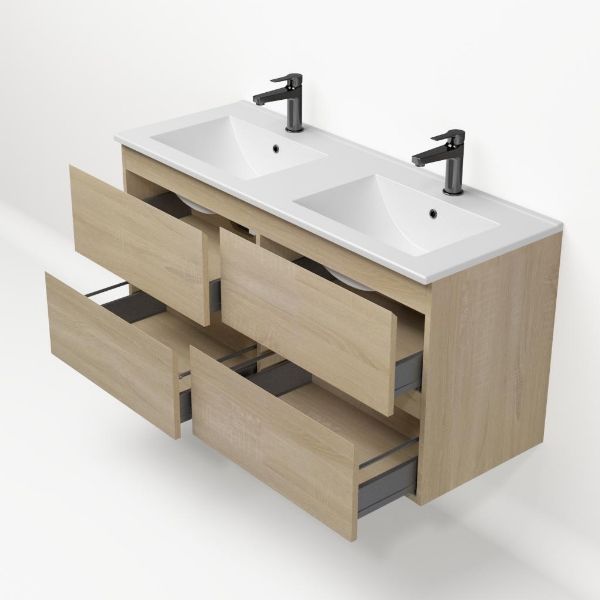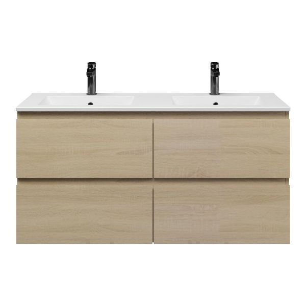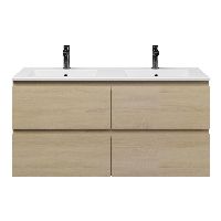 | | Bellanti Elena/Faro badmeubel 120x46 4 softclose laden eiken licht greeploos keramische wastafel dubbel mat wit met 2 kraangaten |