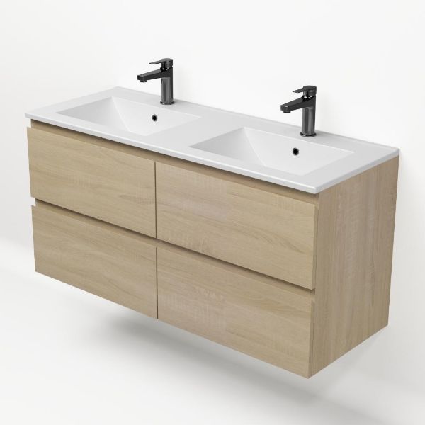 | Bellanti Elena/Faro badmeubel 120x46 4 softclose laden eiken licht greeploos keramische wastafel dubbel mat wit met 2 kraangaten |