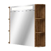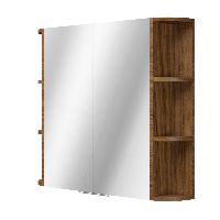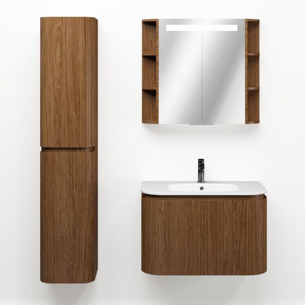 | | Bellanti Avelino/Marta badmeubel met ronde hoeken, ribbel - latjes structuur, 80x48 2 softclose laden (1 binnenladen) warm noten greeploos polystone wastafel wit met 1 kraangat |