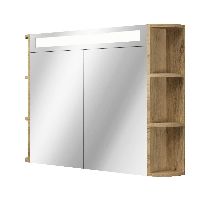 | | Bellanti Avelino/Marta badmeubel met ronde hoeken, ribbel - latjes structuur, 100x48 2 softclose laden (1 binnenladen) warm eiken greeploos polystone wastafel wit met 1 kraangat |