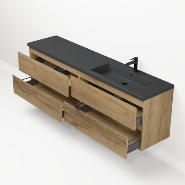 | | Bellanti Gisella/Esta-q badmeubel 200x46 4 softclose laden warm eiken greeploos quartz enkele wastafel rechts mat grijs met 1 kraangat |
