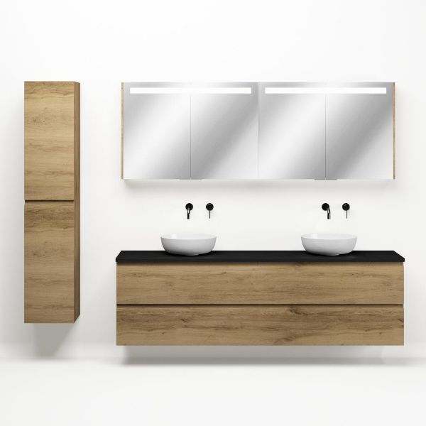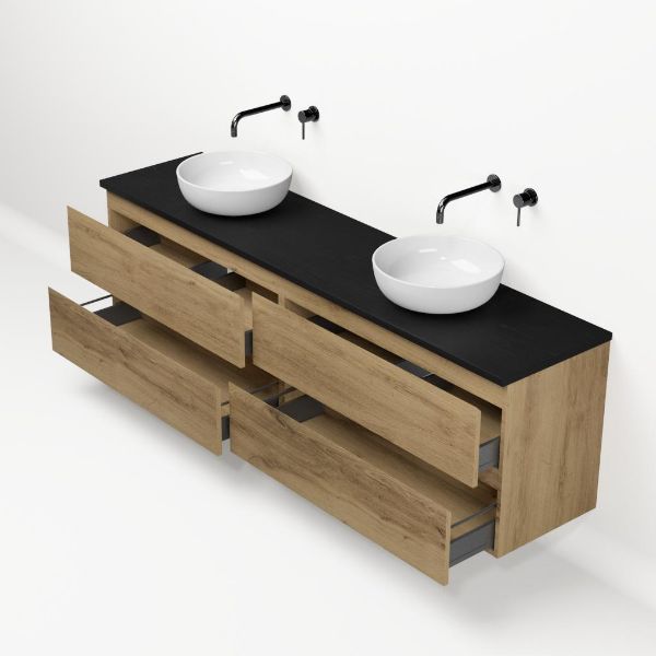| | Bellanti Gisella/Lamina badmeubel 200x46cm 4 laden warm eiken greeploos met afdekblad 3cm dikte zwart mat eiken - exclusief waskom : waskom naar keuze |