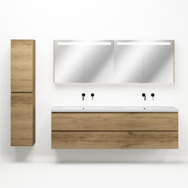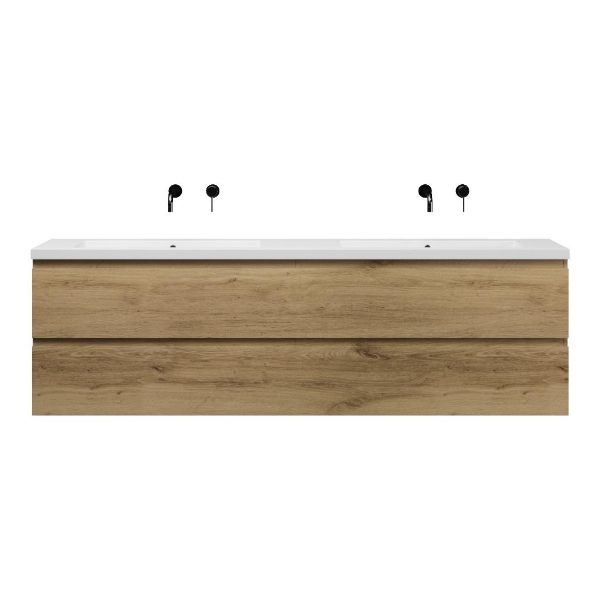 | Bellanti Gisella/Esta-q badmeubel 200x46 4 softclose laden warm eiken greeploos quartz dubbele wastafel mat wit zonder kraangaten |