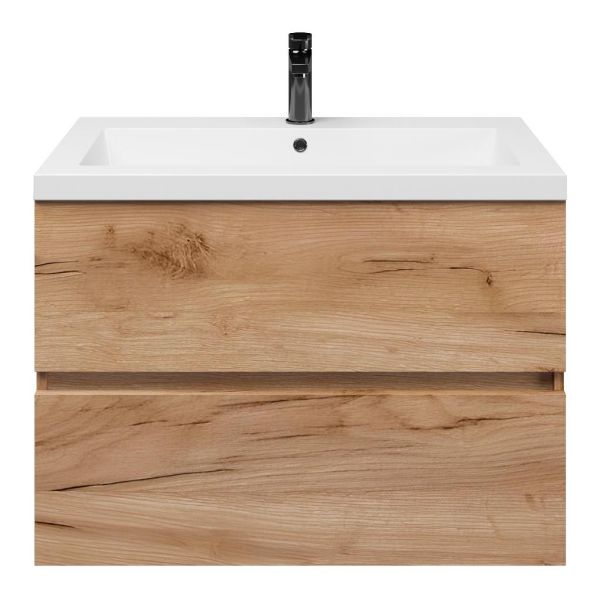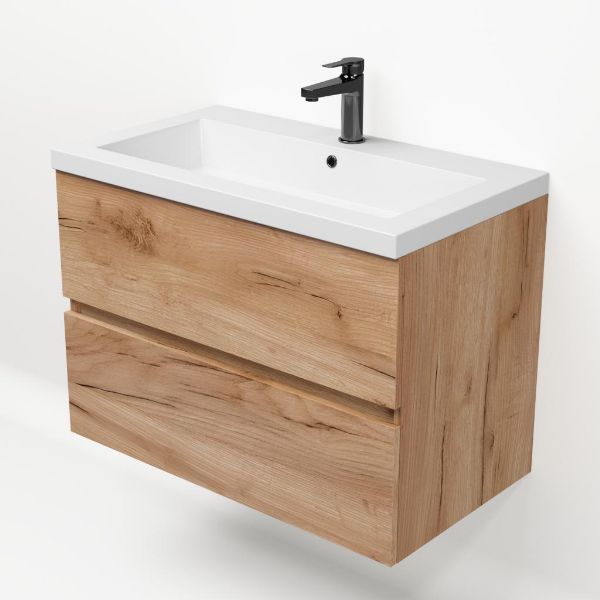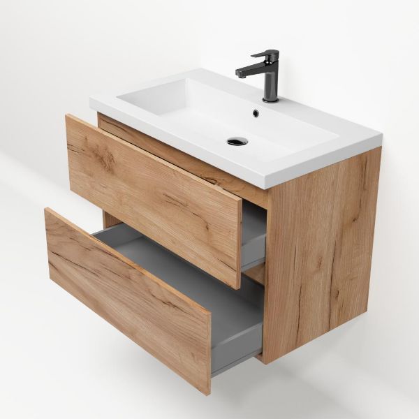 | TrisLine Eliza/Esta badmeubel 80x46 2 softclose laden robuust eiken greeploos polystone wastafel wit met 1 kraangat |