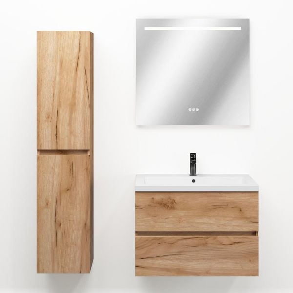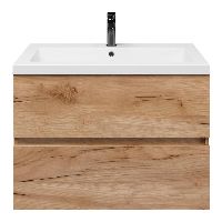 | | TrisLine Eliza/Esta badmeubel 80x46 2 softclose laden robuust eiken greeploos polystone wastafel wit met 1 kraangat |