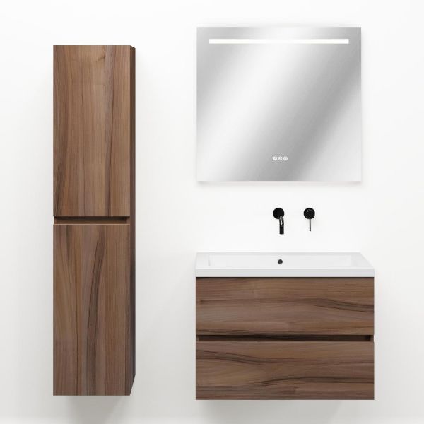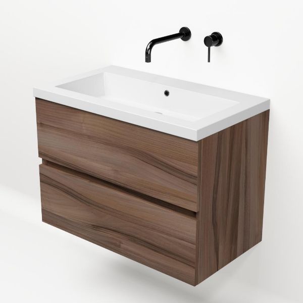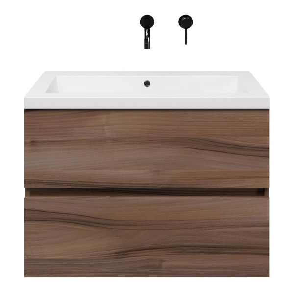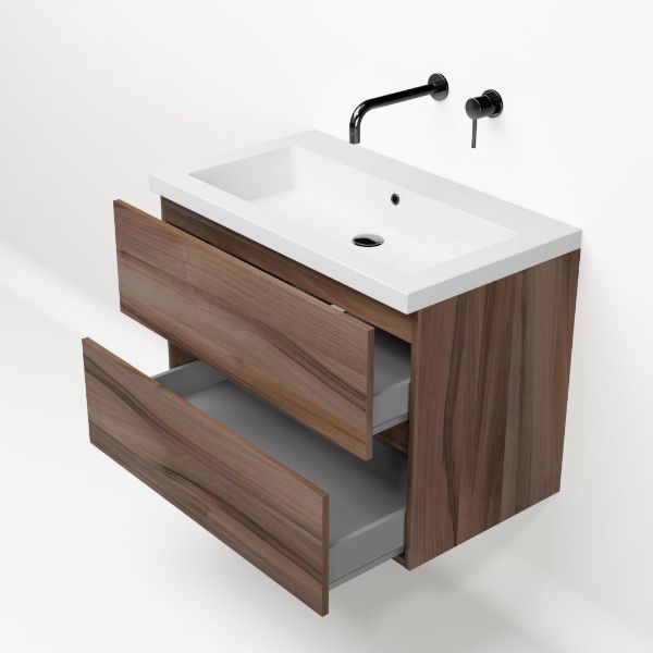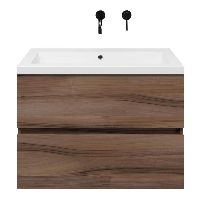 | | TrisLine Eliza/Esta badmeubel 80x46 2 softclose laden robuust noten greeploos polystone wastafel wit zonder kraangat |