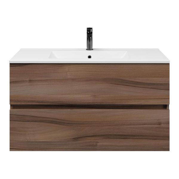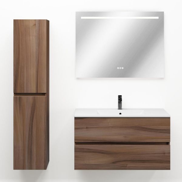 Het Eliza badmeubel bestaat uit een greeploze ladenkast die is uitgevoerd in de kleur robuust noten. Op het meubel ligt een wastafel van keramiek met 1 kraangat. Het meubel wordt compleet gemonteerd geleverd en bevat twee ruime laden op Hettich ladegeleiders met softclosing. Achter de laden zit 7 cm vrije ruimte en is daardoor geschikt voor een afvoer zowel naar de muur als de vloer toe. De bovenste lade beschikt tevens over een sifonuitsparing. Het meubel wordt geleverd incl. bevestigingsmateriaal.