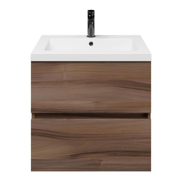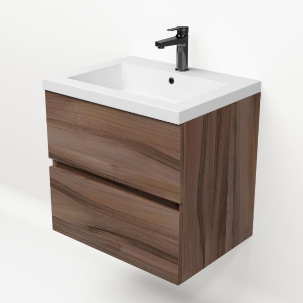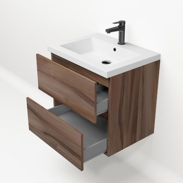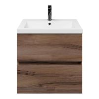 | | TrisLine Eliza/Esta badmeubel 60x46 2 softclose laden robuust noten greeploos polystone wastafel wit met 1 kraangat |