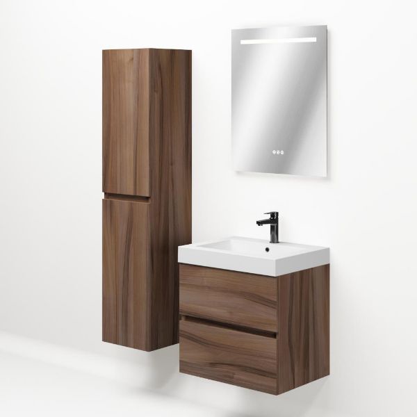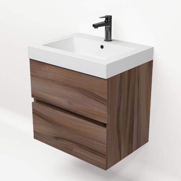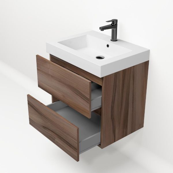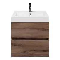 | | TrisLine Eliza/Esta badmeubel 60x46 2 softclose laden robuust noten greeploos polystone wastafel wit met 1 kraangat |