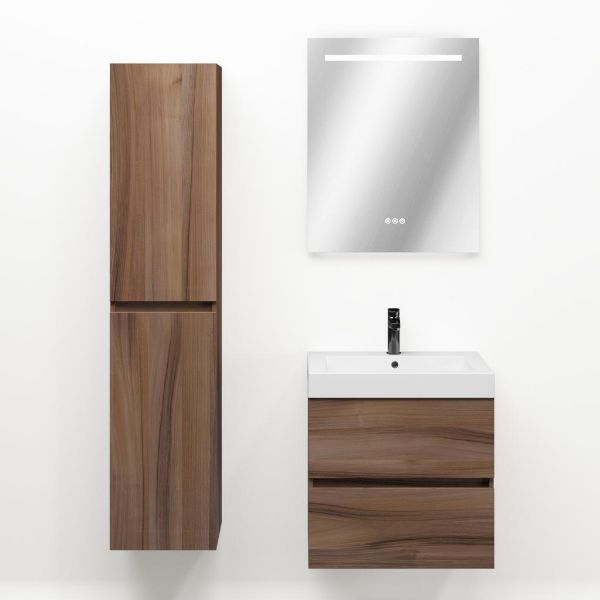 Het Eliza badmeubel bestaat uit een greeploze ladenkast die is uitgevoerd in de kleur robuust noten. Op het meubel ligt een wastafel van polystone met 1 kraangat. Het meubel wordt compleet gemonteerd geleverd en bevat twee ruime laden op Hettich ladegeleiders met softclosing. Achter de laden zit 7 cm vrije ruimte en is daardoor geschikt voor een afvoer zowel naar de muur als de vloer toe. De bovenste lade beschikt tevens over een sifonuitsparing. Het meubel wordt geleverd incl. bevestigingsmateriaal.