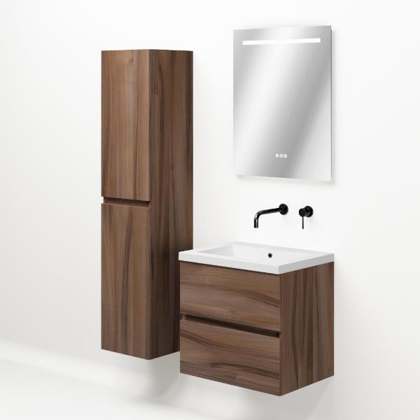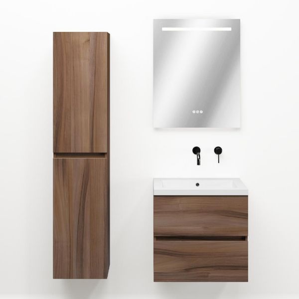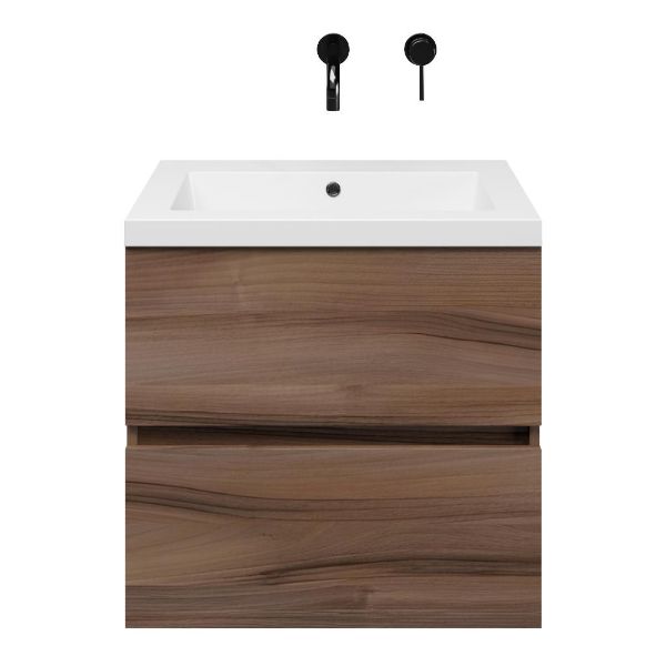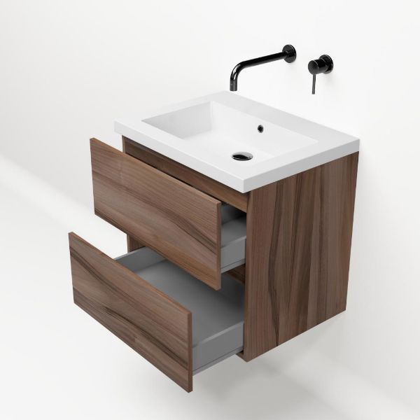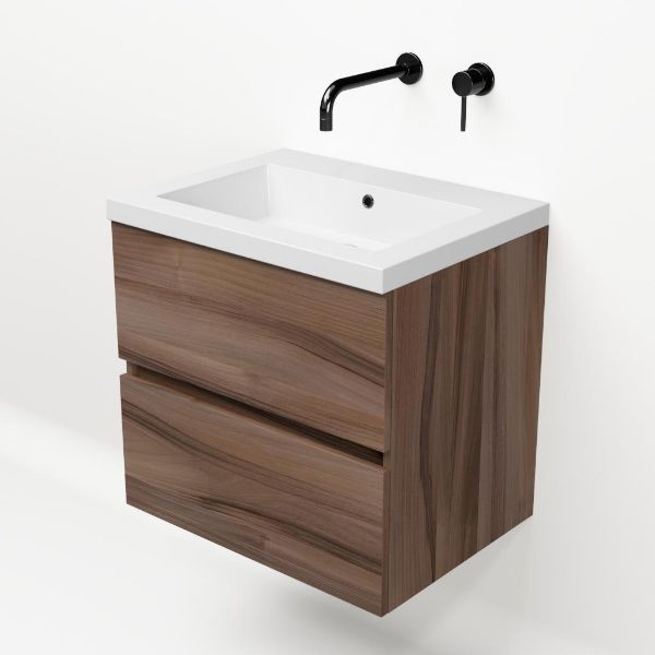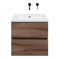 TrisLine Eliza/Esta badmeubel 60x46 2 softclose laden robuust noten greeploos polystone wastafel wit zonder kraangat