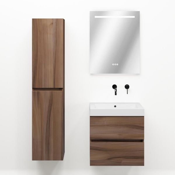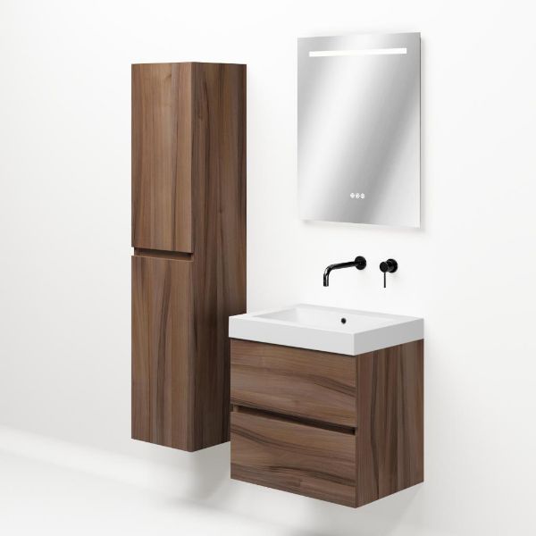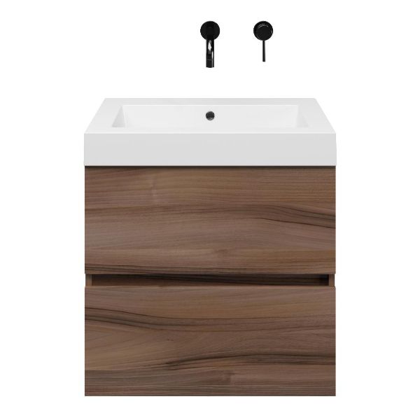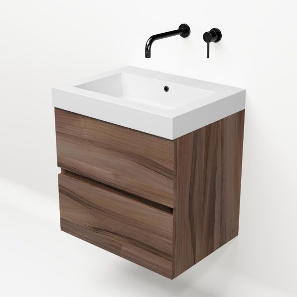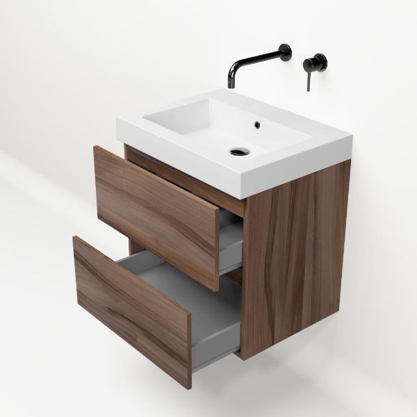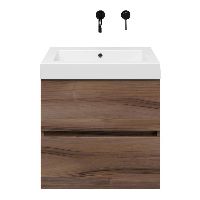 | | TrisLine Eliza/Esta badmeubel 60x46 2 softclose laden robuust noten greeploos polystone wastafel wit zonder kraangat |