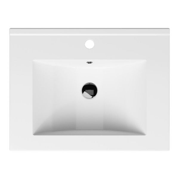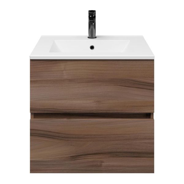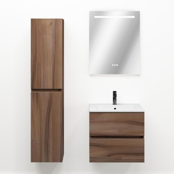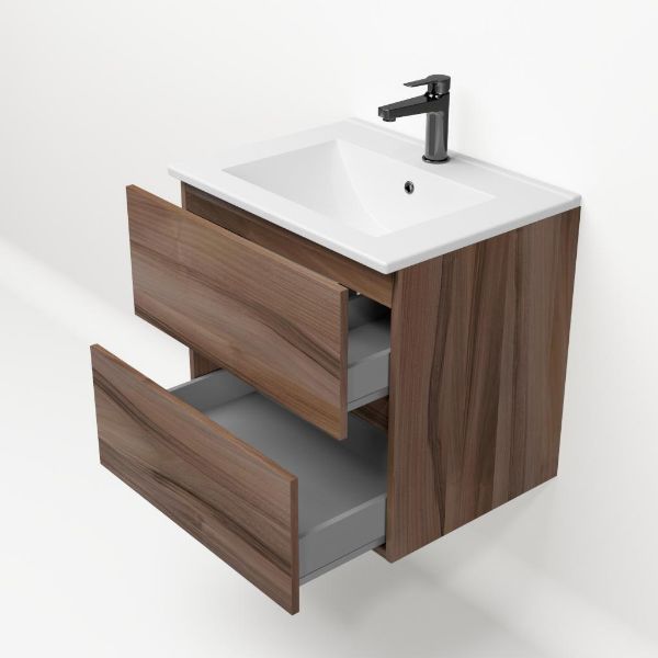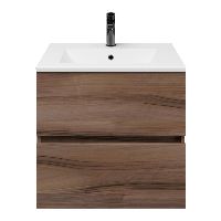 | | TrisLine Eliza/Faro badmeubel 60x46 2 softclose laden robuust noten greeploos keramische wastafel wit met 1 kraangat |