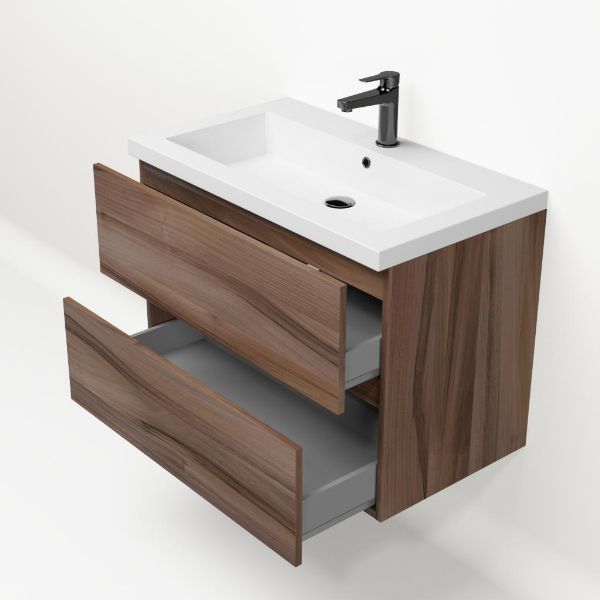 TrisLine Eliza/Esta badmeubel 80x46 2 softclose laden robuust noten greeploos polystone wastafel wit met 1 kraangat