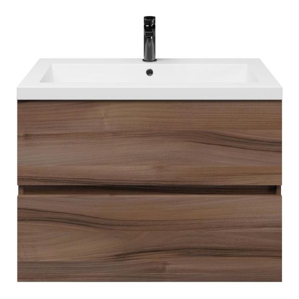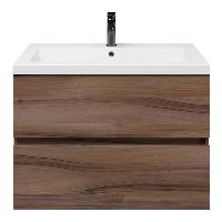 Het Eliza badmeubel bestaat uit een greeploze ladenkast die is uitgevoerd in de kleur robuust noten. Op het meubel ligt een wastafel van polystone met 1 kraangat. Het meubel wordt compleet gemonteerd geleverd en bevat twee ruime laden op Hettich ladegeleiders met softclosing. Achter de laden zit 7 cm vrije ruimte en is daardoor geschikt voor een afvoer zowel naar de muur als de vloer toe. De bovenste lade beschikt tevens over een sifonuitsparing. Het meubel wordt  geleverd incl. bevestigingsmateriaal.