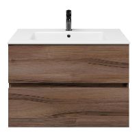 | TrisLine Eliza/Etna badmeubel 80x46 2 softclose laden robuust noten greeploos keramische wastafel wit met 1 kraangat |