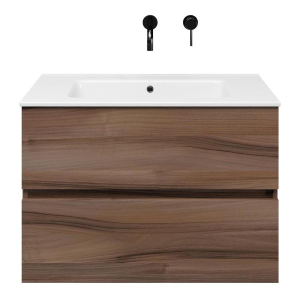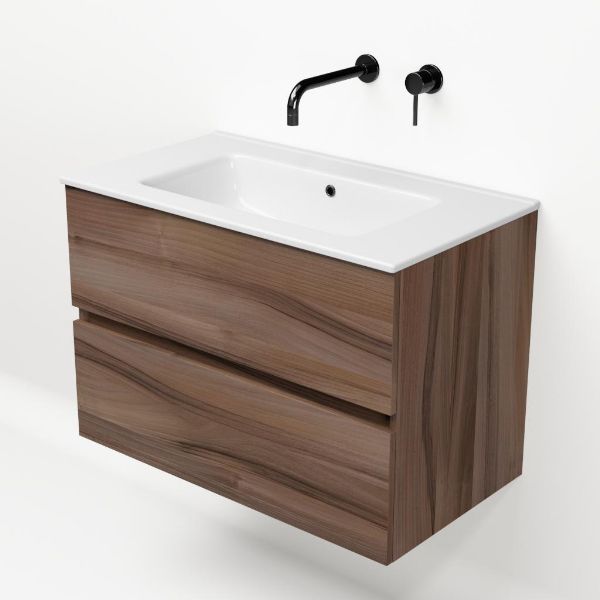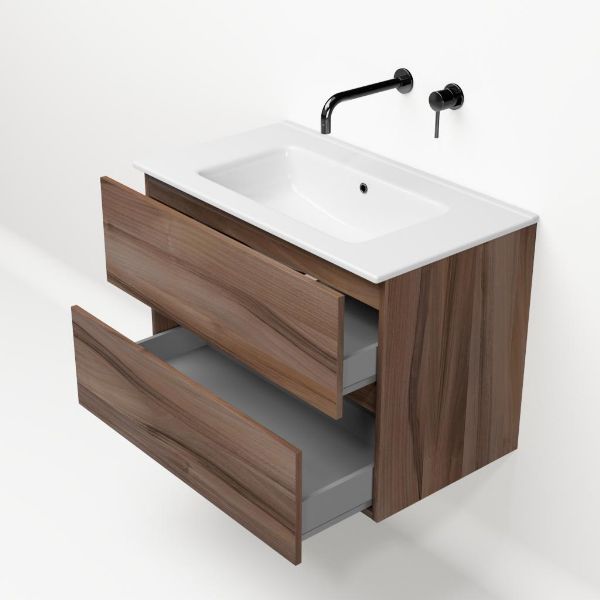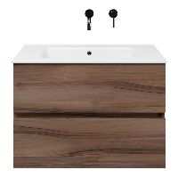 | | TrisLine Eliza/Etna badmeubel 80x46 2 softclose laden robuust noten greeploos keramische wastafel wit zonder kraangat |
