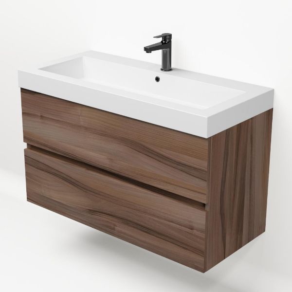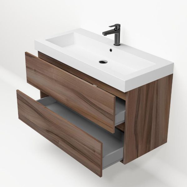 | | TrisLine Eliza/Esta badmeubel 100x46 2 softclose laden robuust noten greeploos polystone wastafel wit met 1 kraangat |