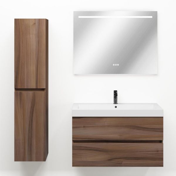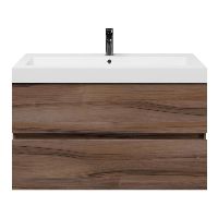 Het Eliza badmeubel bestaat uit een greeploze ladenkast die is uitgevoerd in de kleur robuust noten. Op het meubel ligt een wastafel van polystone met 1 kraangat. Het meubel wordt compleet gemonteerd geleverd en bevat twee ruime laden op Hettich ladegeleiders met softclosing. Achter de laden zit 7 cm vrije ruimte en is daardoor geschikt voor een afvoer zowel naar de muur als de vloer toe. De bovenste lade beschikt tevens over een sifonuitsparing. Het meubel wordt geleverd incl. bevestigingsmateriaal.