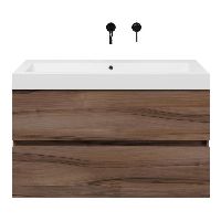 | | TrisLine Eliza/Esta badmeubel 100x46 2 softclose laden robuust noten greeploos polystone wastafel wit zonder kraangat |
