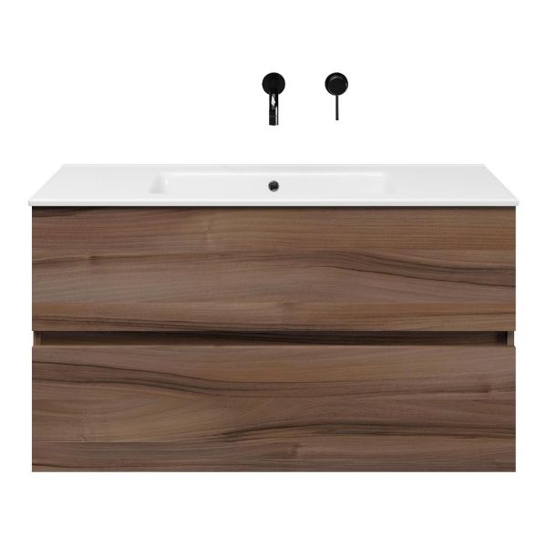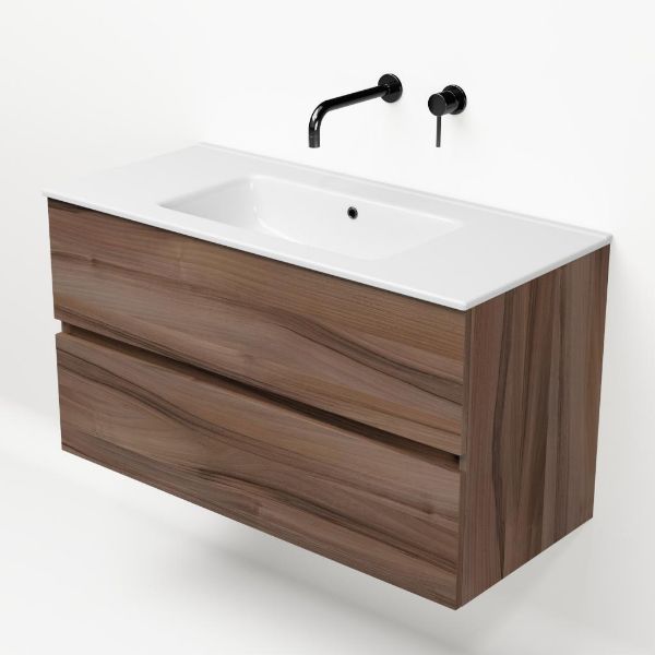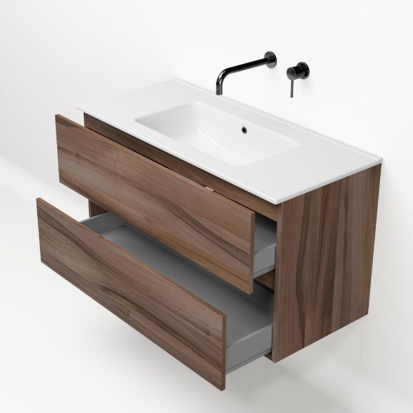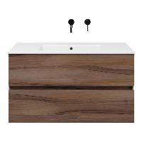 | TrisLine Eliza/Etna badmeubel 100x46 2 softclose laden robuust noten greeploos keramische wastafel wit zonder kraangat |