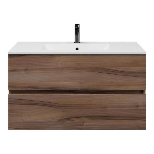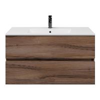 Het Eliza badmeubel bestaat uit een greeploze ladenkast die is uitgevoerd in de kleur robuust noten. Op het meubel ligt een wastafel van keramiek met 1 kraangat. Het meubel wordt compleet gemonteerd geleverd en bevat twee ruime laden op Hettich ladegeleiders met softclosing. Achter de laden zit 7 cm vrije ruimte en is daardoor geschikt voor een afvoer zowel naar de muur als de vloer toe. De bovenste lade beschikt tevens over een sifonuitsparing. Het meubel wordt geleverd incl. bevestigingsmateriaal.