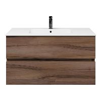 Het Eliza badmeubel bestaat uit een greeploze ladenkast die is uitgevoerd in de kleur robuust noten. Op het meubel ligt een wastafel van keramiek met 1 kraangat. Het meubel wordt compleet gemonteerd geleverd en bevat twee ruime laden op Hettich ladegeleiders met softclosing. Achter de laden zit 7 cm vrije ruimte en is daardoor geschikt voor een afvoer zowel naar de muur als de vloer toe. De bovenste lade beschikt tevens over een sifonuitsparing. Het meubel wordt geleverd incl. bevestigingsmateriaal.