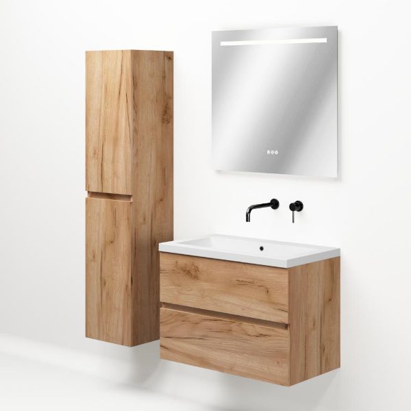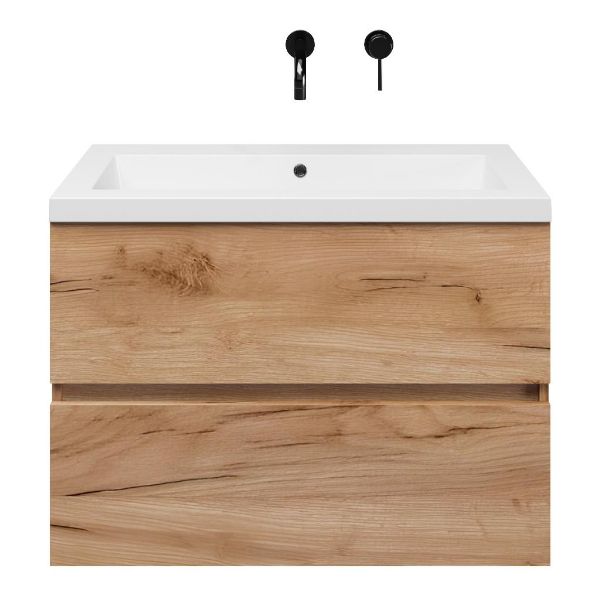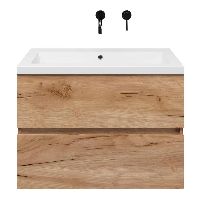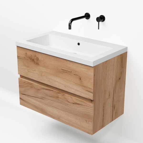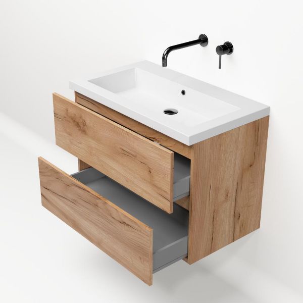 TrisLine Eliza/Esta badmeubel 80x46 2 softclose laden robuust eiken greeploos polystone wastafel wit zonder kraangat