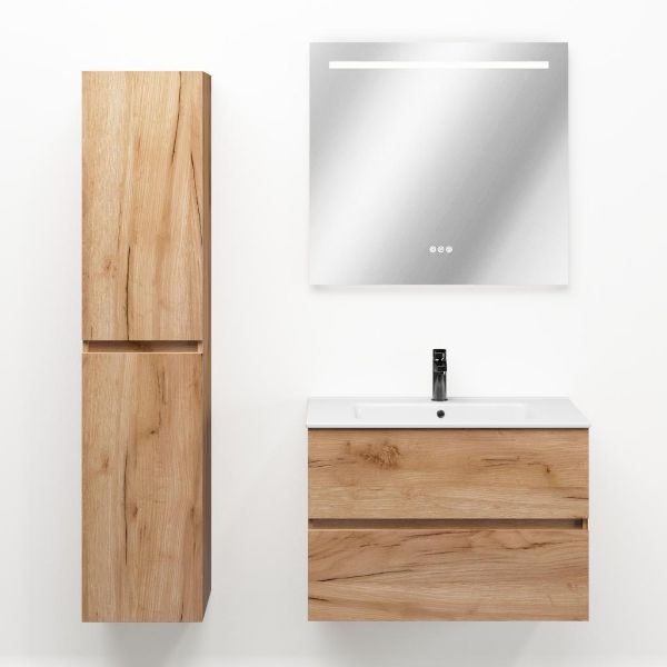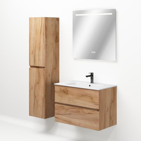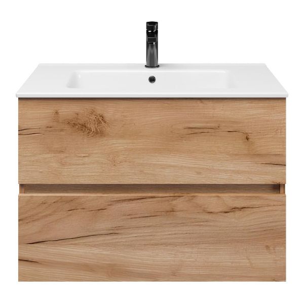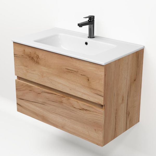 | | TrisLine Eliza/Etna badmeubel 80x46 2 softclose laden robuust eiken greeploos keramische wastafel wit met 1 kraangat |