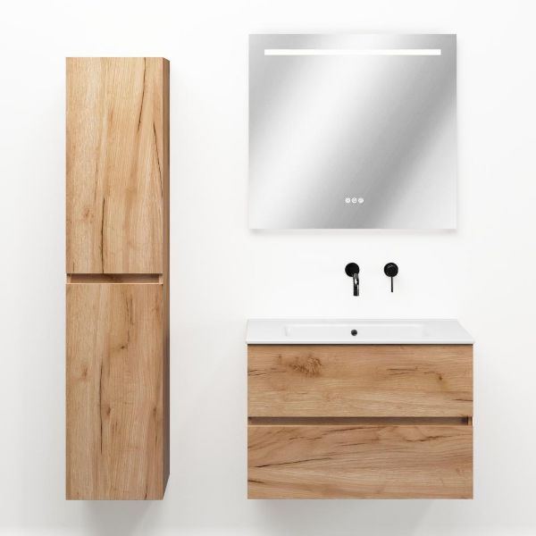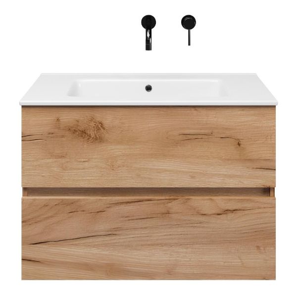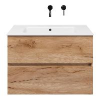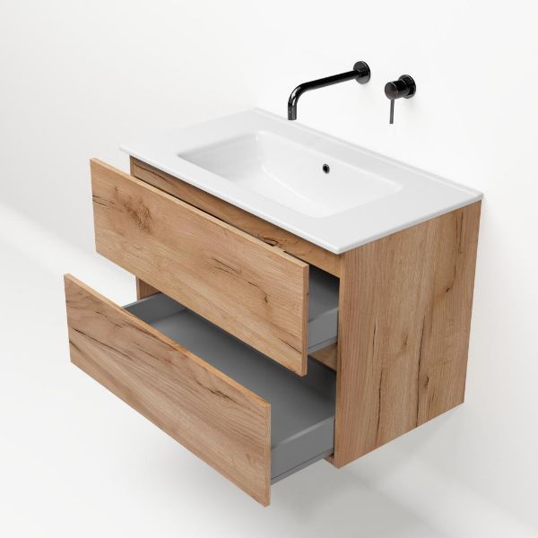| | TrisLine Eliza/Etna badmeubel 80x46 2 softclose laden robuust eiken greeploos keramische wastafel wit zonder kraangat |