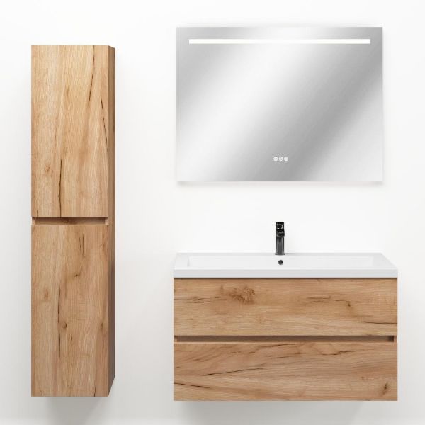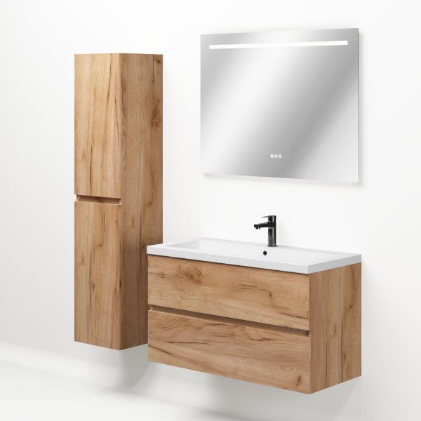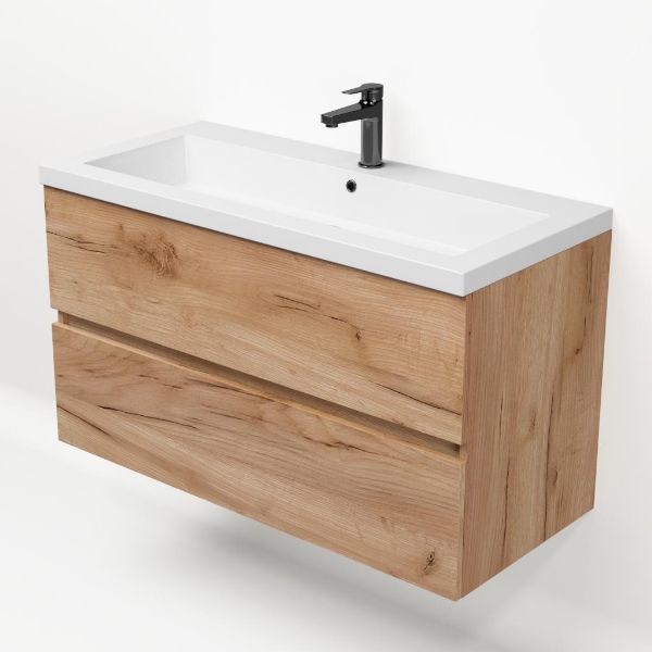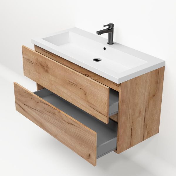 TrisLine Eliza/Esta badmeubel 100x46 2 softclose laden robuust eiken greeploos polystone wastafel wit met 1 kraangat