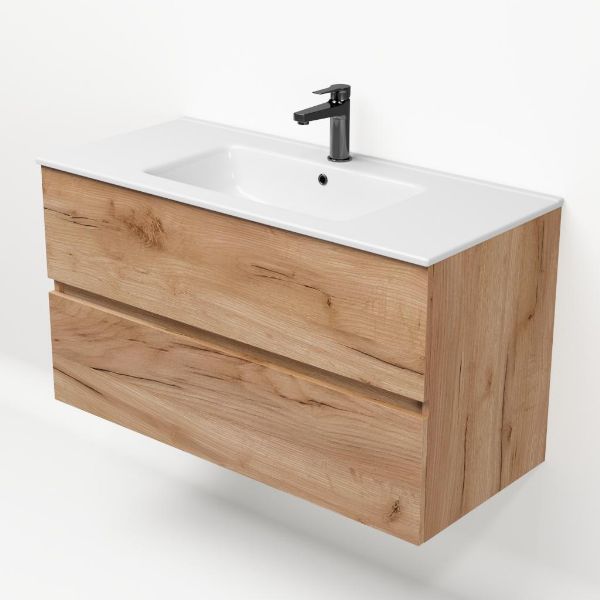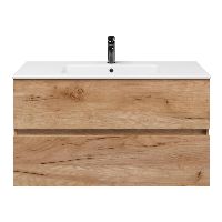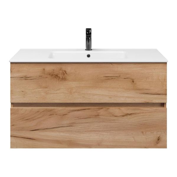 | | TrisLine Eliza/Etna badmeubel 100x46 2 softclose laden robuust eiken greeploos keramische wastafel wit met 1 kraangat |