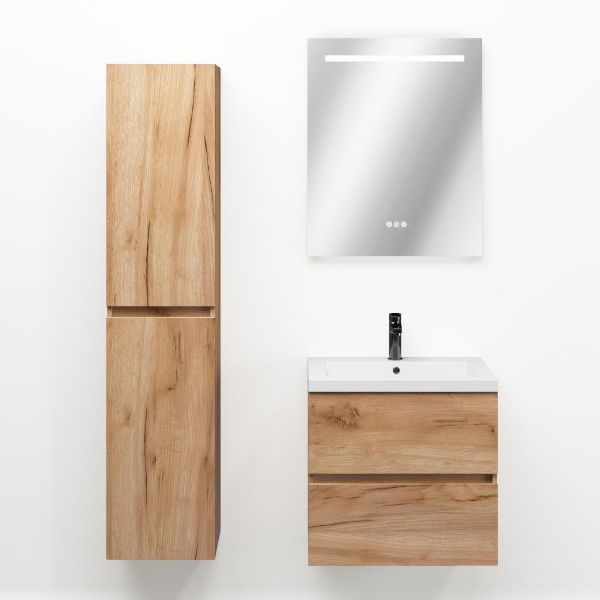 | | TrisLine Eliza/Esta badmeubel 60x46 2 softclose laden robuust eiken greeploos polystone wastafel wit met 1 kraangat |