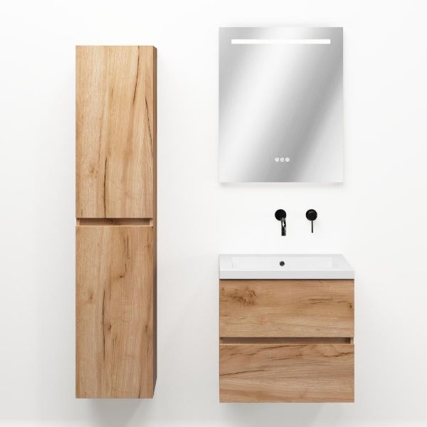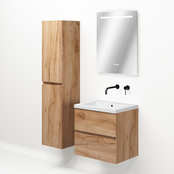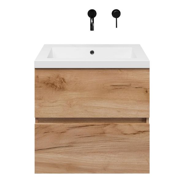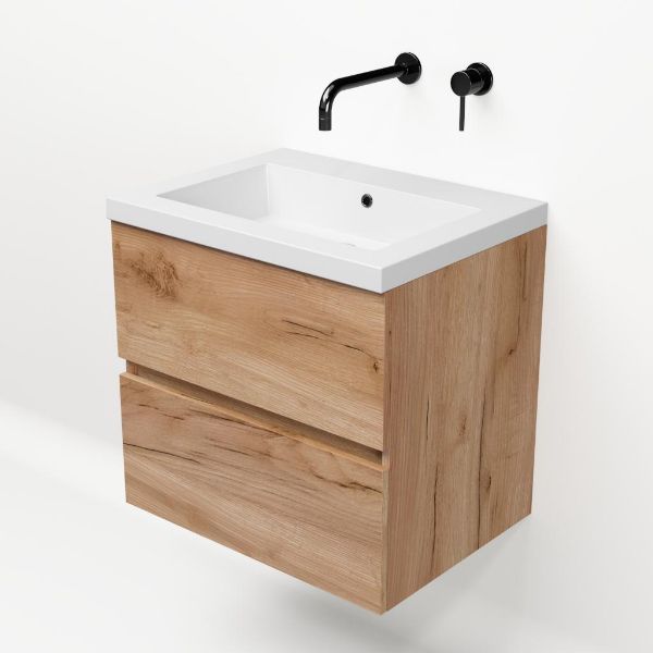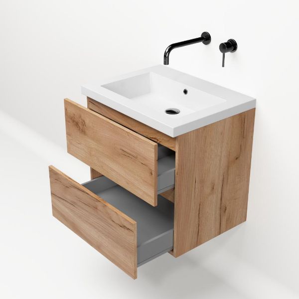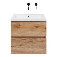 | | TrisLine Eliza/Esta badmeubel 60x46 2 softclose laden robuust eiken greeploos polystone wastafel wit zonder kraangat |