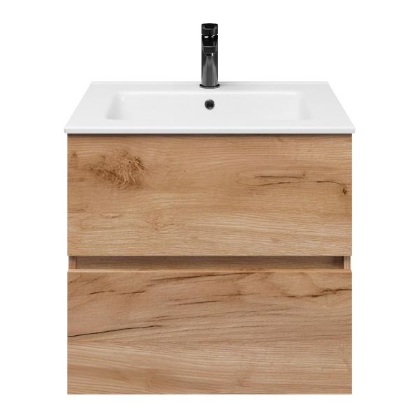 | | TrisLine Eliza/Etna badmeubel 60x46 2 softclose laden robuust eiken greeploos keramische wastafel wit met 1 kraangat |