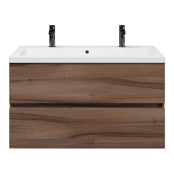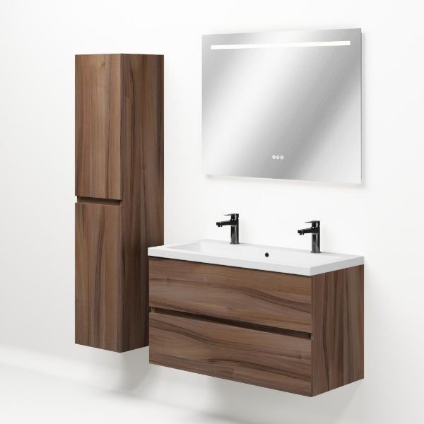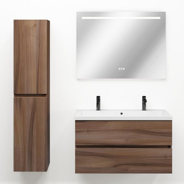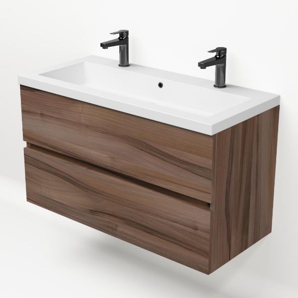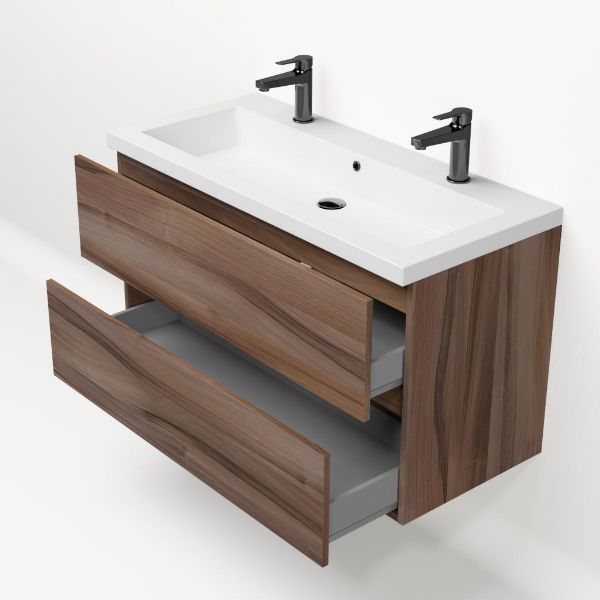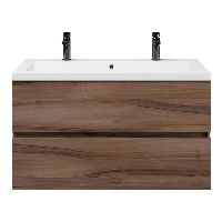 | | TrisLine Eliza/Esta badmeubel 100x46 2 softclose laden robuust noten greeploos polystone wastafel wit met 2 kraangaten |