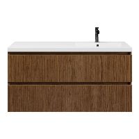 | Bellanti Silvan/Esta badmeubel 120x46 2 softclose laden met ribbel - latjes structuur warm noten greeploos polystone wastafel wit met 1 kraangat |