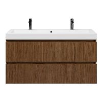 | | Bellanti Silvan/Esta badmeubel 120x46 2 softclose laden met ribbel - latjes structuur warm noten greeploos polystone wastafel wit met 2 kraangaten |