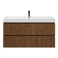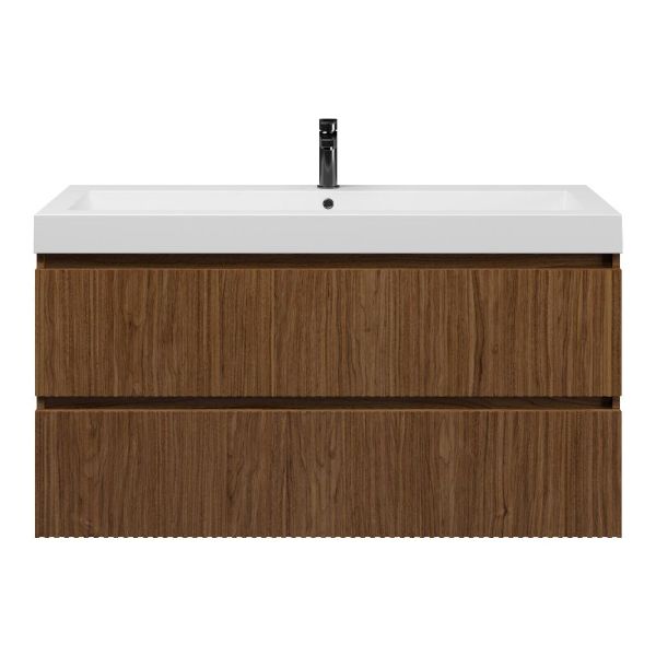 | Bellanti Silvan/Esta-Q badmeubel 120x46 2 softclose laden met ribbel - latjes structuur warm noten greeploos quartz wastafel mat wit met 1 kraangat |