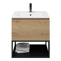 | | Bellanti Solo/Tela/Faro badmeubel 60x46 1 softclose lade eiken natuur greeploos keramische wastafel wit met 1 kraangat met mat zwart metalen frame |