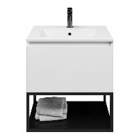 | | Bellanti Solo/Tela/Faro badmeubel 60x46 1 softclose lade wit hoogglans greeploos keramische wastafel wit met 1 kraangat met mat zwart metalen frame |