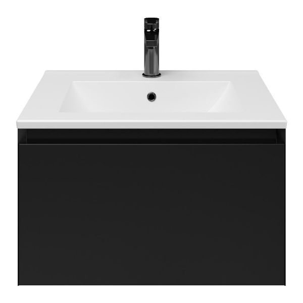 | | Bellanti Solo/Faro badmeubel 60x46 1 softclose lade zwart mat greeploos keramische wastafel mat wit met 1 kraangat |