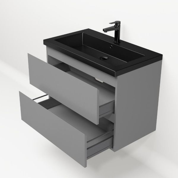 | | Bellanti Gisella/Esta badmeubel 80x46 2 softclose laden mat grijs greeploos polystone wastafel mat zwart met 1 kraangat |