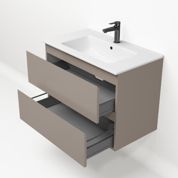 | Bellanti Gisella/Etna badmeubel 80x46 2 softclose laden taupe greeploos keramische wastafel wit met 1 kraangat |