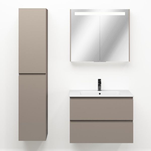 | | Bellanti Gisella/Etna badmeubel 80x46 2 softclose laden taupe greeploos keramische wastafel wit met 1 kraangat |