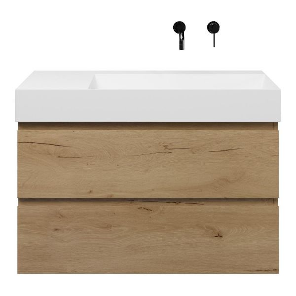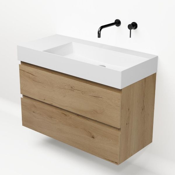 | | Bellanti Elena/Azzurra badmeubel 100x46 2 softclose laden eiken natuur greeploos keramische wastafel rechts wit glans zonder kraangat |